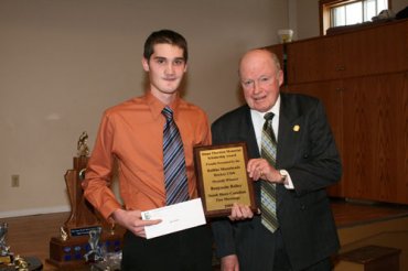 Ben Bailey, Canadian Tire Mustangs accepts Diana Thorton Memorial overall scholarship award $2,500.Making the presentation, Mr. Ross Thompson, Halifax Mooseheads Education Advisor